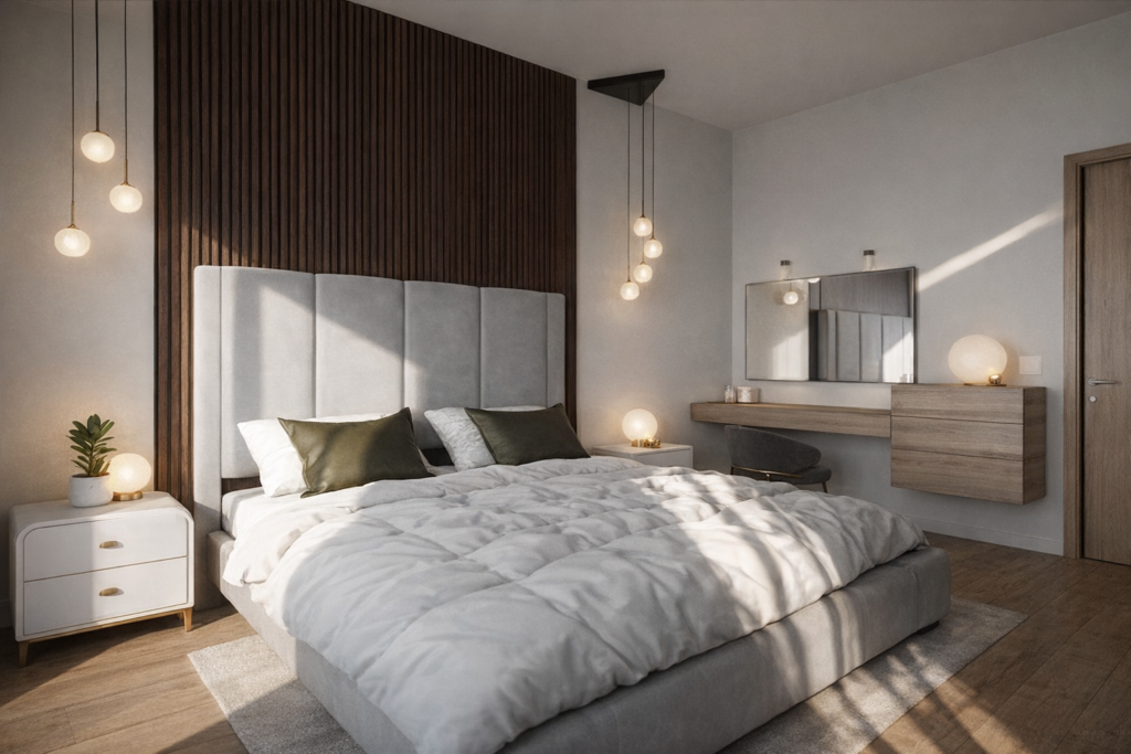 Το υπνοδωμάτιο μετατρέπεται σταδιακά σε έναν προσωπικό χώρο χαλάρωσης, όπου η αισθητική και η λειτουργικότητα συνυπάρχουν αρμονικά.