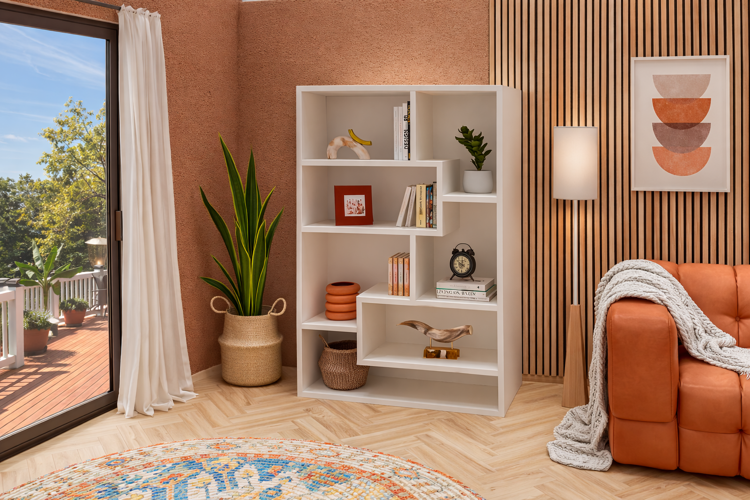 - Αποθηκευτικοί Χώροι: Ασύμμετρα Ράφια διαφορετικών διαστάσεων για να φιλοξενούν βιβλία, διακοσμητικά αντικείμενα ή μικρά φυτά. Το κάτω τμήμα είναι ιδανικό για μεγαλύτερα αντικείμενα ή καλάθια αποθήκευσης, προσφέροντας επιπλέον πρακτικότητα.