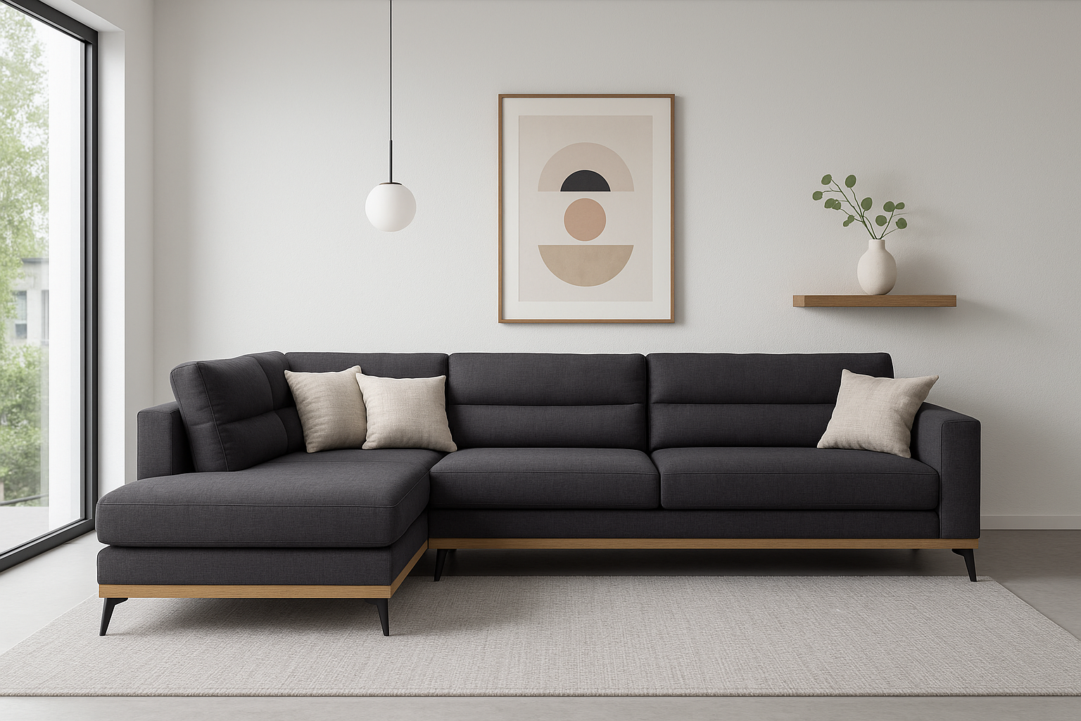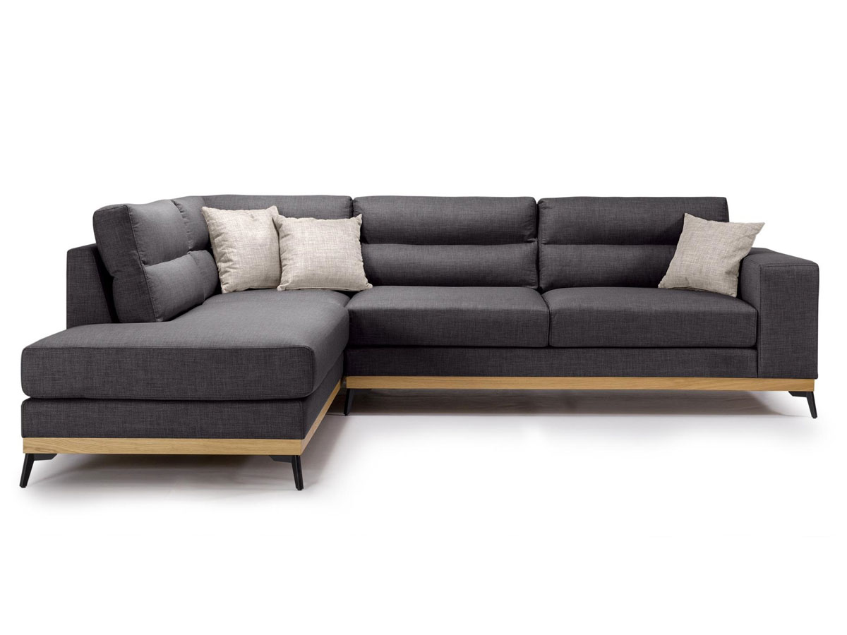 • Βάση: Ξύλινη βάση σε φυσική απόχρωση με μεταλλικά πόδια μοντέρνου σχεδιασμού σε υπερυψωμένο καναπέ