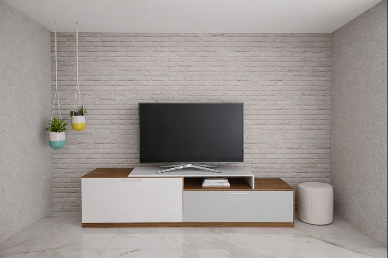 Ο έξυπνος σχεδιασμός του περιλαμβάνει δύο ευρύχωρα κλειστά ντουλάπια με κομψές λαβές, εξασφαλίζοντας αποθηκευτικό χώρο για αντικείμενα που θέλετε να διατηρήσετε εκτός οπτικού πεδίου. Παράλληλα, διαθέτει ένα πρακτικό ανοιχτό ράφι ιδανικό για κονσόλες gaming, media players, βιβλία ή διακοσμητικά αντικείμενα.
