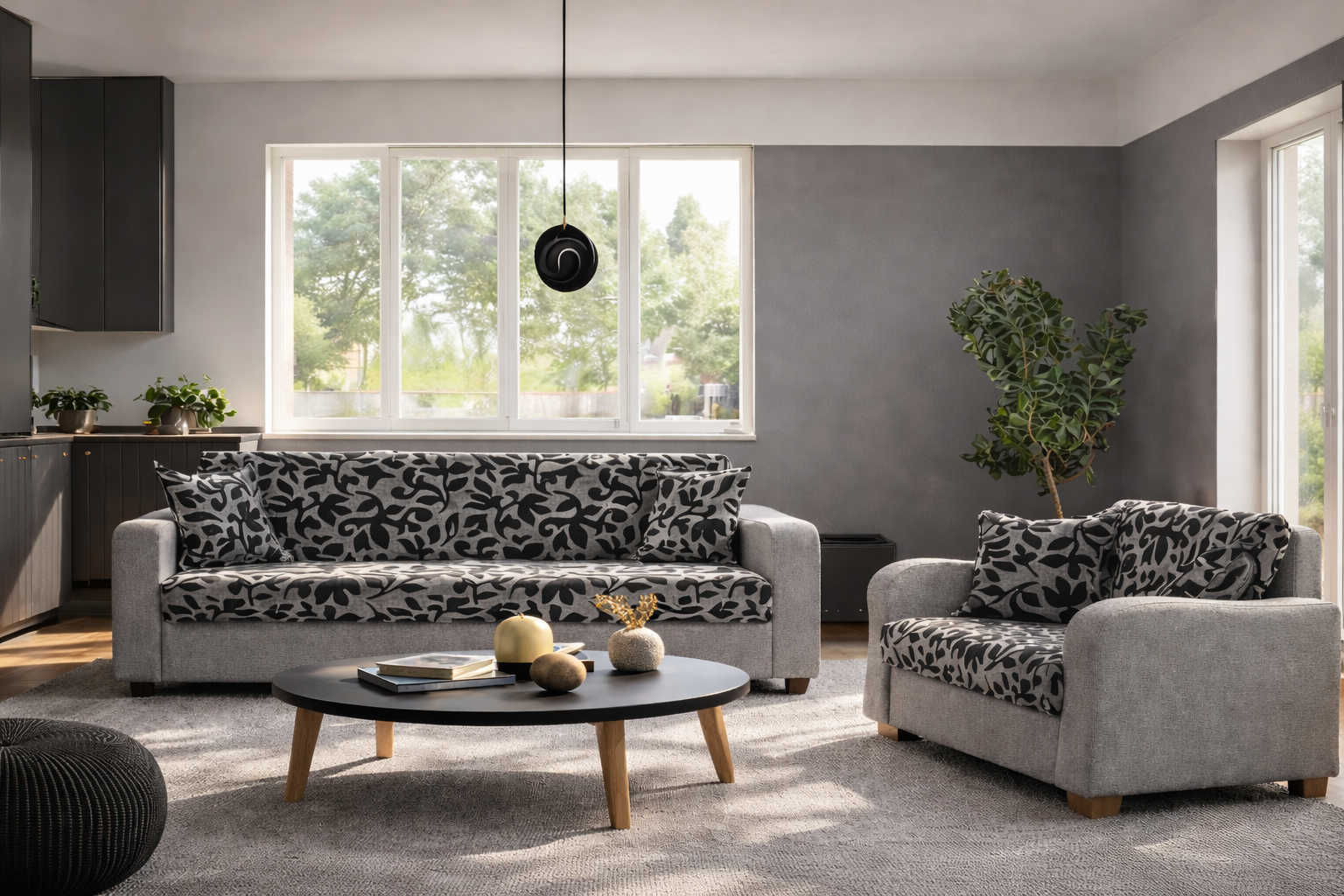 - Σκελετός: Κατασκευασμένος από ανθεκτικό ξύλο και μεταλλικό μηχανισμό, για να προσφέρει στιβαρή και ανθεκτική στήριξη τόσο στη λειτουργία καναπέ όσο και ως κρεβάτι.