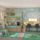 Η “JUNGLE” προσφέρει επιπλέον χώρο για αποθήκευση και δημιουργικές δραστηριότητες, με πλαϊνή σκάλα για εύκολη πρόσβαση και αντοχή. Ο φυσικός τόνος του ξύλου σε συνδυασμό με το πράσινο του δάσους και υφάσματα με θέμα τη φύση κάνουν την κουκέτα να ενσωματώνεται αρμονικά σε δωμάτια με θεματική διακόσμηση.