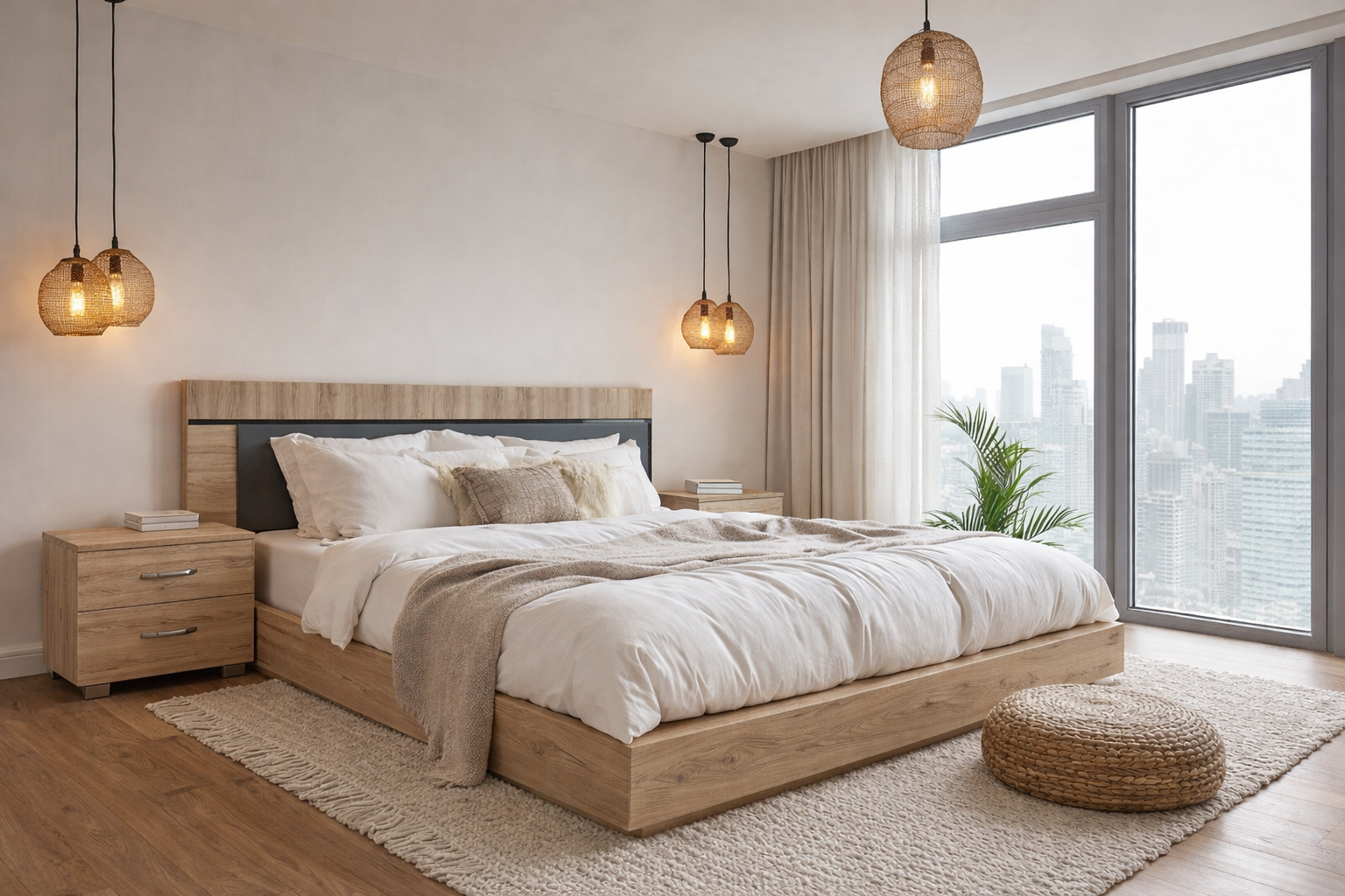 Η κρεβατοκάμαρα “CORDOBA” είναι σχεδιασμένη για να φέρει την απόλυτη ισορροπία ανάμεσα στην αισθητική και την άνεση. Το κεφαλάρι της ξεχωρίζει με την επένδυση σε σκούρα απόχρωση, που δημιουργεί έναν κομψό και μοντέρνο χαρακτήρα. Οι καθαρές γραμμές του ξύλινου φινιρίσματος σε φυσικούς τόνους προσδίδουν μια αίσθηση ζεστασιάς και διαχρονικότητας, ιδανική για κάθε σύγχρονο υπνοδωμάτιο.