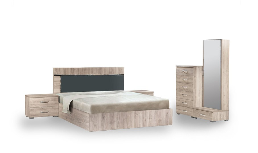 Το σετ περιλαμβάνει ευρύχωρα κομοδίνα και μια συρταριέρα με καθρέφτη, που εξασφαλίζει αποθηκευτικό χώρο για την οργάνωση του χώρου σας. Η προσθήκη μεταλλικών λεπτομερειών στις λαβές και ο ποιοτικός μηχανισμός soft-close στα συρτάρια προσφέρουν άνεση και ευκολία στη χρήση, κάνοντας την “CORDOBA” την ιδανική επιλογή για όσους αναζητούν πρακτικότητα και στυλ.