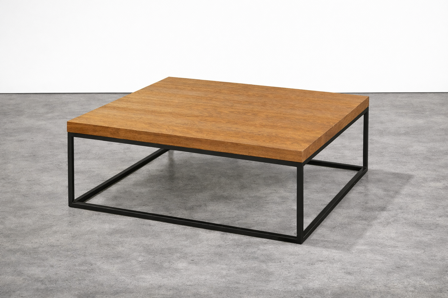 Το “BOX” αποτελείται από μια ανθεκτική, τετράγωνη επιφάνεια από ξύλο, σε φυσική απόχρωση που αναδεικνύει τους ζεστούς τόνους και τα όμορφα νερά του ξύλου. Η απλότητα της επιφάνειας αντισταθμίζεται αρμονικά από τη γεωμετρική βάση, η οποία αποτελείται από μαύρο μεταλλικό πλαίσιο σε σχήμα κυβικού πλαισίου. Το σχέδιο του προσφέρει ανοιχτό χώρο κάτω από την επιφάνεια, δημιουργώντας μια αίσθηση ευρυχωρίας και καθιστώντας το παράλληλα εύκολο στον καθαρισμό και τη μετακίνηση.