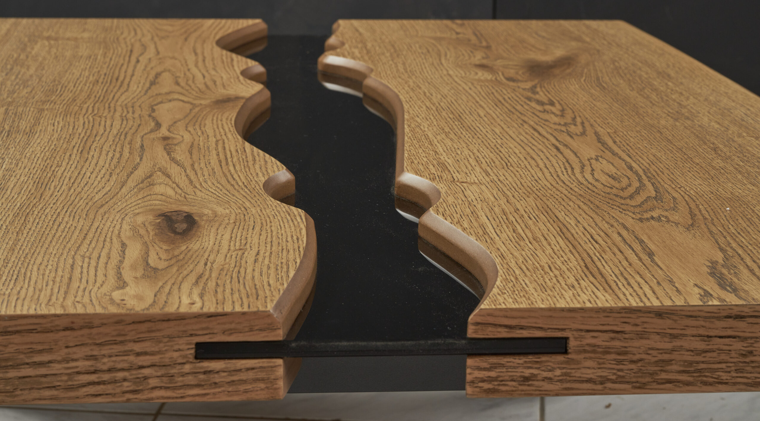 Η επιφάνειά του αποτελείται από δύο ανεξάρτητα ξύλινα στοιχεία, με οργανική, φυσική γραμμή και εμφανή νερά ξύλου, τα οποία δημιουργούν ένα ιδιαίτερο οπτικό αποτέλεσμα και αναδεικνύουν τη φυσική ομορφιά του υλικού. Το ελαφρώς ασύμμετρο “σπάσιμο” της επιφάνειας προσθέτει μοντέρνα αισθητική και καθιστά το ELEVEN ένα statement έπιπλο για τον χώρο.