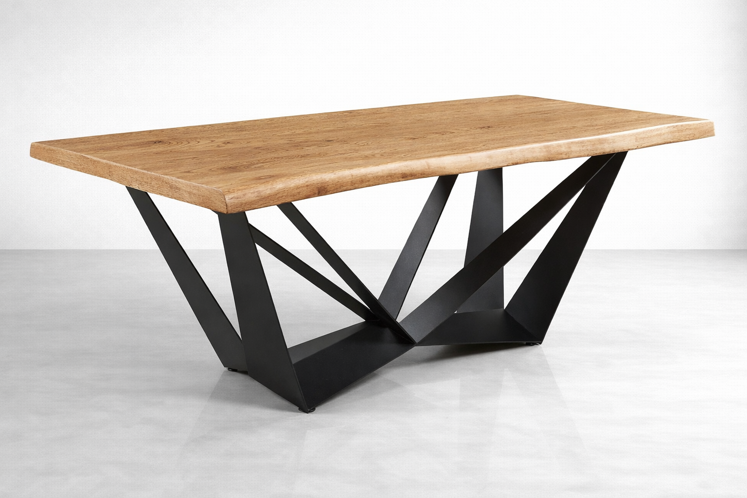 Η επιφάνεια της τραπεζαρίας είναι κατασκευασμένη από φυσικό ξύλο υψηλής ποιότητας, με λεπτομέρειες που αναδεικνύουν τη φυσική υφή και τις ιδιαιτερότητες του ξύλου. Το οργανικό τελείωμα των ακμών προσθέτει μια ζεστή αίσθηση και ενισχύει τη μοναδικότητα του σχεδίου. Το φινίρισμα της ξύλινης επιφάνειας έχει υποστεί επεξεργασία με προστατευτικά βερνίκια για μακροχρόνια αντοχή σε γρατζουνιές, λεκέδες και καθημερινή φθορά.