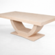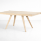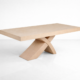 Η επιφάνειά της είναι κατασκευασμένη από MDF υψηλής ποιότητας, επενδεδυμένο με καπλαμά φυσικού ξύλου, που εξασφαλίζει φυσική υφή και υψηλή αντοχή σε καθημερινή χρήση. Το φινίρισμα με οικολογικά βερνίκια προσθέτει προστασία από γρατζουνιές, υγρασία και φθορά, ενώ ενισχύει τη φυσική ομορφιά του ξύλου. Η στιβαρή βάση από μασίφ ξύλο σε σχήμα “Χ” παρέχει μέγιστη σταθερότητα και προσθέτει έναν δυναμικό χαρακτήρα στο σύνολο.